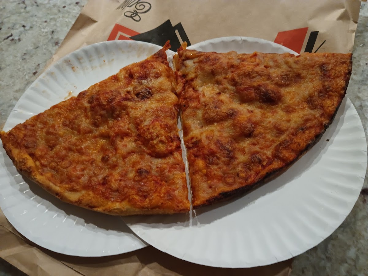 50 out of 5 It's that good. I was driving somewhere tonight and I saw it out of the corner of my eye. I expected a nice decent piece of fluffy New England pizza - but it was even better than I expected. Couple of nice old guys in there who really knew what they were doing. I took it home and took a couple bites and it was good, then I put it in the toaster oven for a little bit and it was just absolutely stellar. I'll definitely have to put this on my list of favorites.